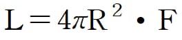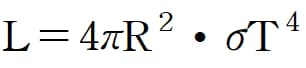2) 별의 형태는 반지름이 R인 구형에 가까우므로 별이 방출하는 에너지의 총량(광도, L)는 아래와 같이 표현할 수 있다. 별의 광도는 구의 표면적에 단위 면적당 방출 에너지를 곱한 값과 같다.