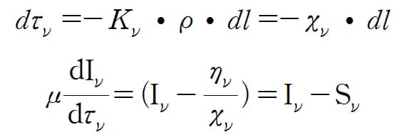 참고할 것은 3에서의 광학적 깊이는 '파장'을 기준으로, 전달 방정식에서는 천문학 및 천체물리학에서 기술되어 있는 그대로 '진동수'를 기준으로 기술하였다는 것이다.