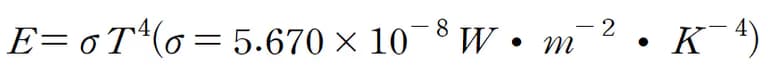 흑체가 단위 시간당, 단위 면적당 방출하는 에너지의 총량은 흑체의 온도 네제곱에 비례한다. - 슈테판 볼츠만 법칙
