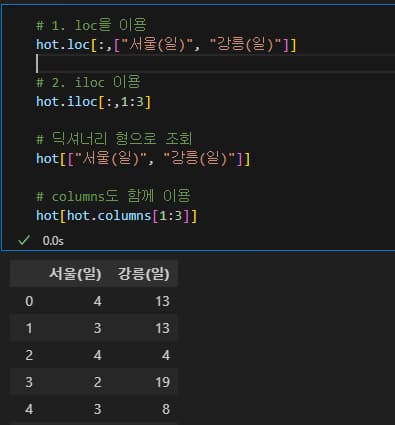 hot_wave.xlsx 데이터 중 서울, 강릉의 폭염 일수만 출력하기