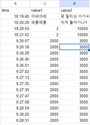 };시트를 보면 값이 잘 전송된 것을 볼 수 있다.